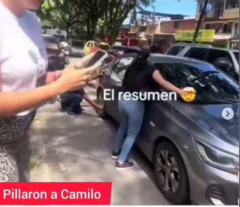 En una escena sacada de una novela, una mujer totalmente fuera de sí fue captada colgándose de un vehículo y lanzando insultos contra quienes, según ella, serían las mozas de un sujeto identificado como «Camilo».