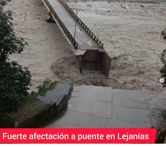 Una impresionante creciente del río Guape generó graves afectaciones estructurales en el puente que comunica zonas rurales del municipio de Lejanías, Meta.