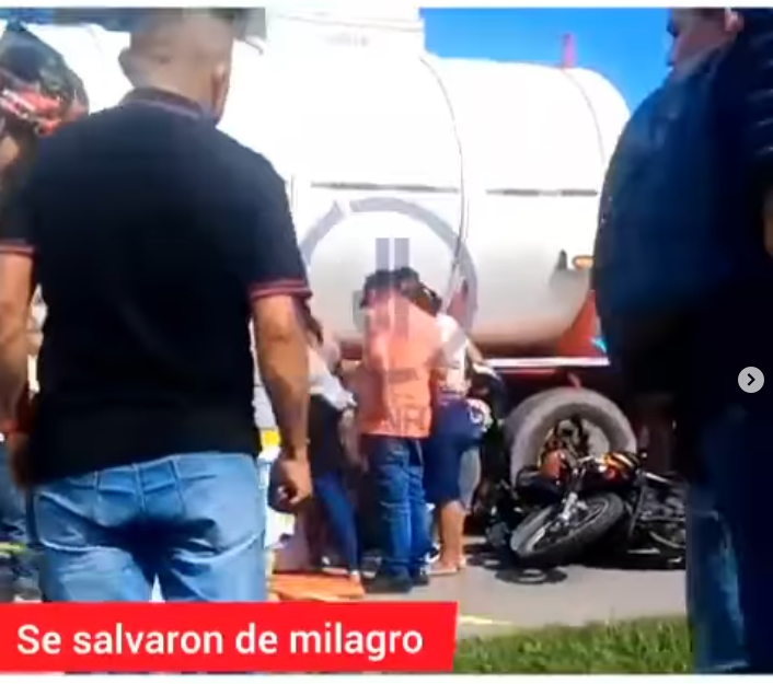 🚨Dos personas que se transportaban en moto se salvaron de milagro luego de quedar abajo de un tracto camión en un accidente ocurrido en el Anillo Vial de Villavicencio.