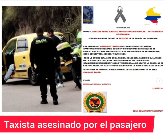 🚨Taxista fue asesinado por su propio pasajero en la carretera Marginal del Llano en Villanueva, Casanare 🚨
