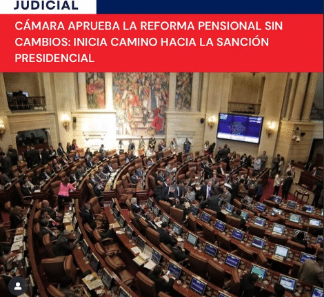 Con 104 votos a favor y 9 en contra, la Cámara de Representantes aprobó en sesiones extraordinarias el texto de la reforma pensional