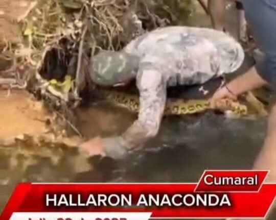 Este martes 22 de julio, habitantes de Cumaral, Meta, quedaron impactados al encontrar una enorme anaconda justo al frente de La Taguara. La.