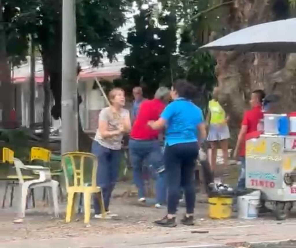 Este video fue grabado por un seguidor de James Informa, debido al escándalo que hacían estas personas en el barrio Santa Helena, la riña se registró entre unos transeúntes y unos vendedores informales.